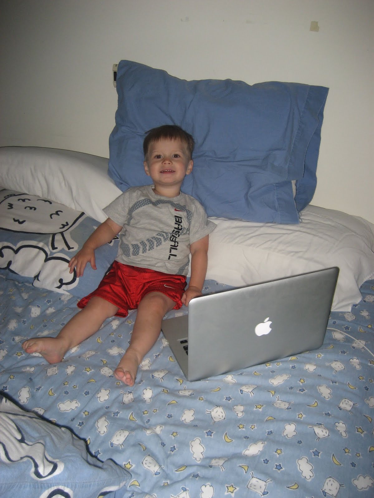 We made the mistake of showing Hunter Elmo on the computer. Now all he says is "Hunter watch Elmo on puter." Sometimes he adds, "in Mama's bed."