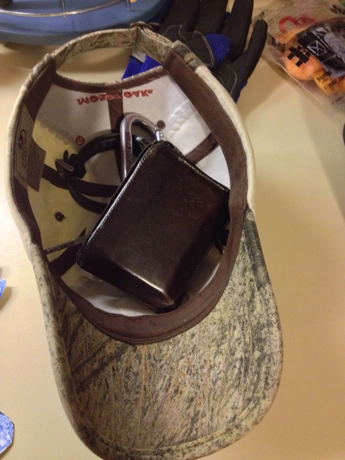 This morning I walked in the kitchen and saw Derrick's hat with this things in it. I immediately thought of my Daddy. He always keeps his wallet, watch, keys, change, handkerchief, comb and at times chap stick in his hat. Derrick does not usually does this, but this morning I was happy to see this. It made me think back to my childhood and reflect on many good memories.
